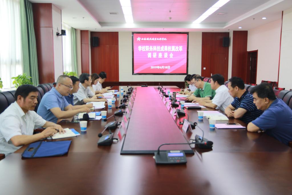 6月18日上午,西安市科技局局长李志军、成果转化与校地合作处处长解中、西安市发改委改革推广工作处副调研员张霖之等一行7人来永利官网就“以事前产权激励为核心的职务科技成果权属改革”工作方案进行调研座谈。永利官网田和平院长、安学武副院长出席会议,教科研处、人事处、计财处、教师发展中心负责人参加座谈。