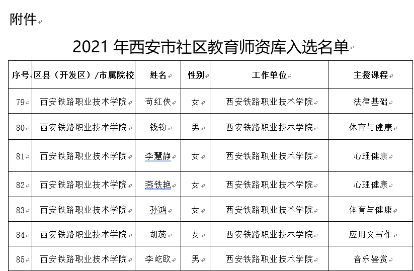为加强我市社区教育师资队伍建设,实现优秀师资资源共享,进一步提高社区教育培训工作的质量和效益,上半年,西安市教育局在全市范围内开展了2021年西安市社区教育师资库遴选工作。学院高度重视这一工作,按照遴选条件,采取自愿报名、逐级审核,择优推荐的原则,上报苟红侠等十名教师参加遴选,经过市级专家评审,面向社会公示等环节,永利官网推荐的苟红侠等七位教师,成功入选西安市社区教育师资库。