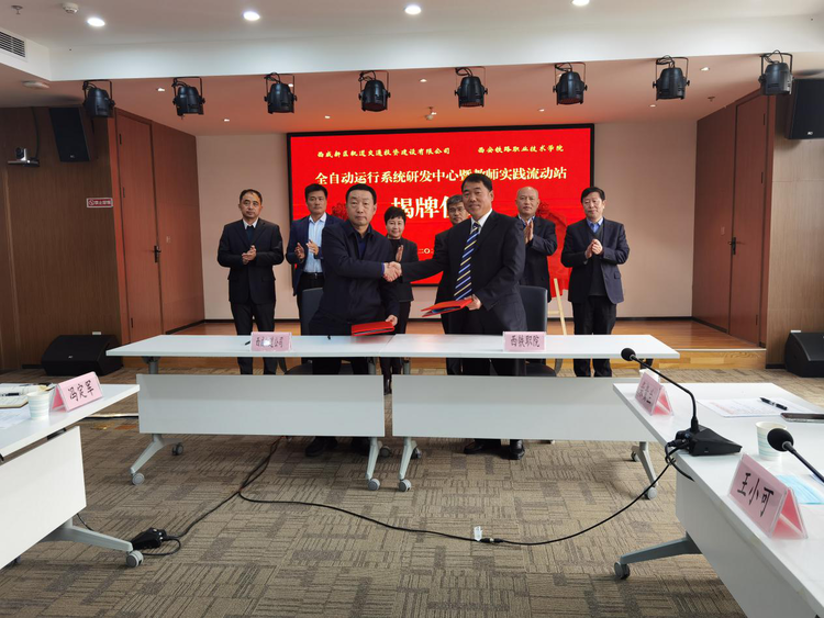 1月22日上午,永利官网与西咸新区轨道交通投资建设有限公司就双方共同成立全自动运行系统研发中心暨教师实践流动站举行了揭牌签约仪式。出席此次仪式的领导有西咸新区管委会副主任李肇娥,西咸新区轨道交通投资建设有限公司董事长张建军,副总工程师何宗文,以及相关部门负责人,永利官网院长赵春平,副院长安学武,以及相关部门负责人和骨干教师代表等。揭牌仪式在沣东产业园西咸新区轨道交通投资建设有限公司多媒体会议室举行,由公司副总工程师陈侃主持。