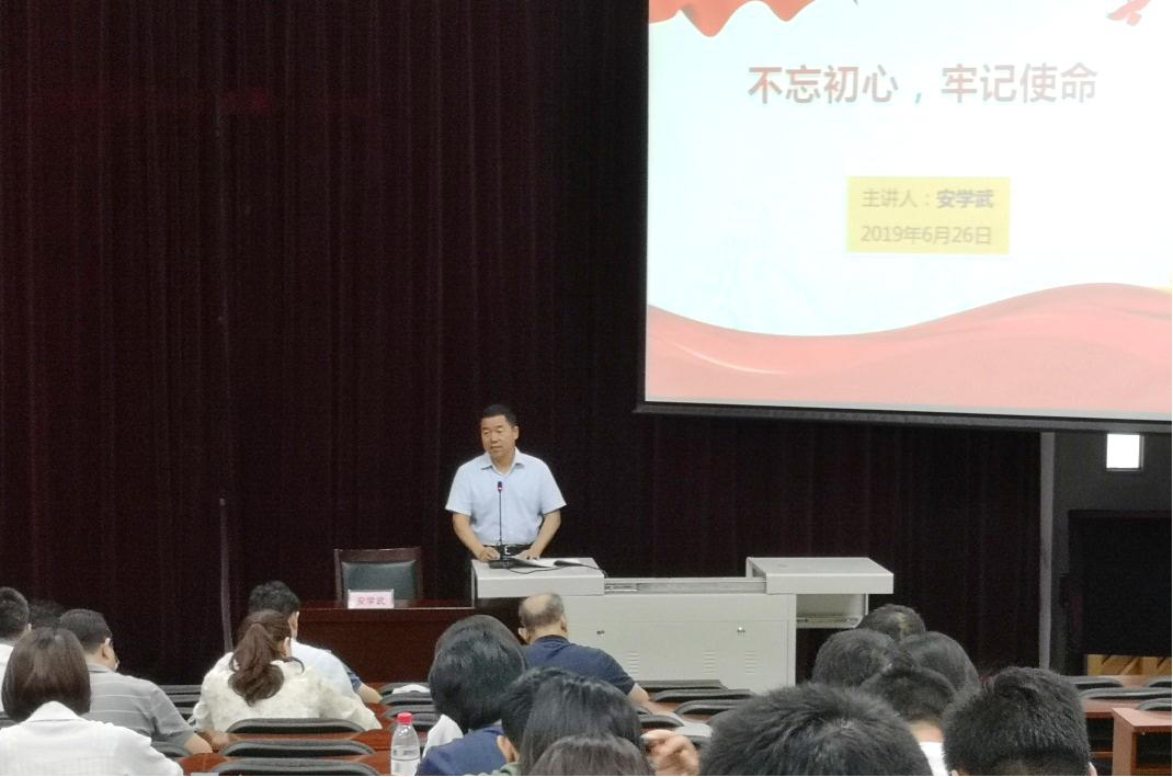 党委委员 、学院副院长赵六杰以“不忘初心、牢记使命--为推动学校各项事业发展贡献力量”为题,结合近期学习体会、以及学校建设情况,为机关后勤党总支行政党支部、后勤党支部、自强综合党支部讲授专题党课。重点讲授了要践行初心和使命,有所作为,必须做到“五个过硬”。一是不忘初心,做到信念过硬;二是对党忠诚,做到政治过硬;三是担当作为,做到责任过硬;四是增强本领,做到能力过硬;五是以身作则,做到作风过硬。