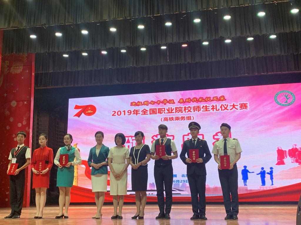 在6月29日至6月30日举办的2019年全国职业院校师生礼仪大赛(高铁乘务组)中,永利官网代表队斩获礼仪情景剧一等奖第一名,礼仪操二等奖第一名,团体项目三等奖的殊荣;代茹媛同学获得礼仪演讲比赛和职业仪态展示两项三等奖,王欣怡同学获得礼仪演讲比赛三等奖;刘峥、田乐老师荣获“优秀指导教师”称号。