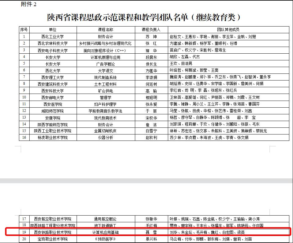 近日,永利官网电子信息学院《计算机应用基础》课程获批2021年陕西省教育厅省级课程思政示范课。