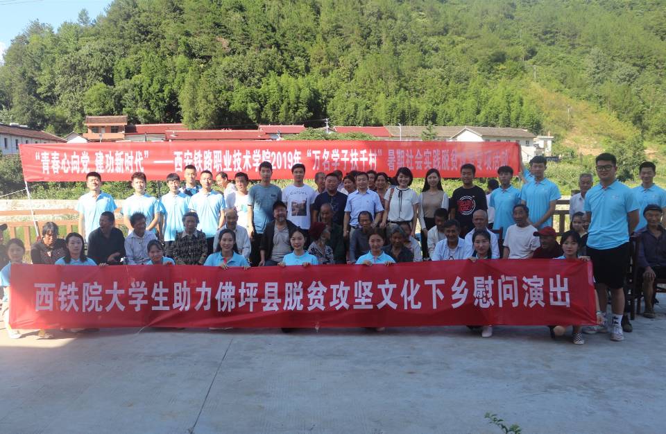 为贯彻落实陕西省委教育工委《关于组织开展“万名学子扶千村”2019年暑假社会实践脱贫攻坚专项活动的通知》精神和学院2019年度扶贫工作相关安排,进一步加强永利官网青年学生的社会责任感与使命感,助力脱贫攻坚。8月7日,院团委组织了20余名优秀学生组成“西铁院大学生助力佛坪县脱贫攻坚爱心团队”来到佛坪县开展“万名学子扶千村” 暑期社会实践脱贫攻坚专项活动。