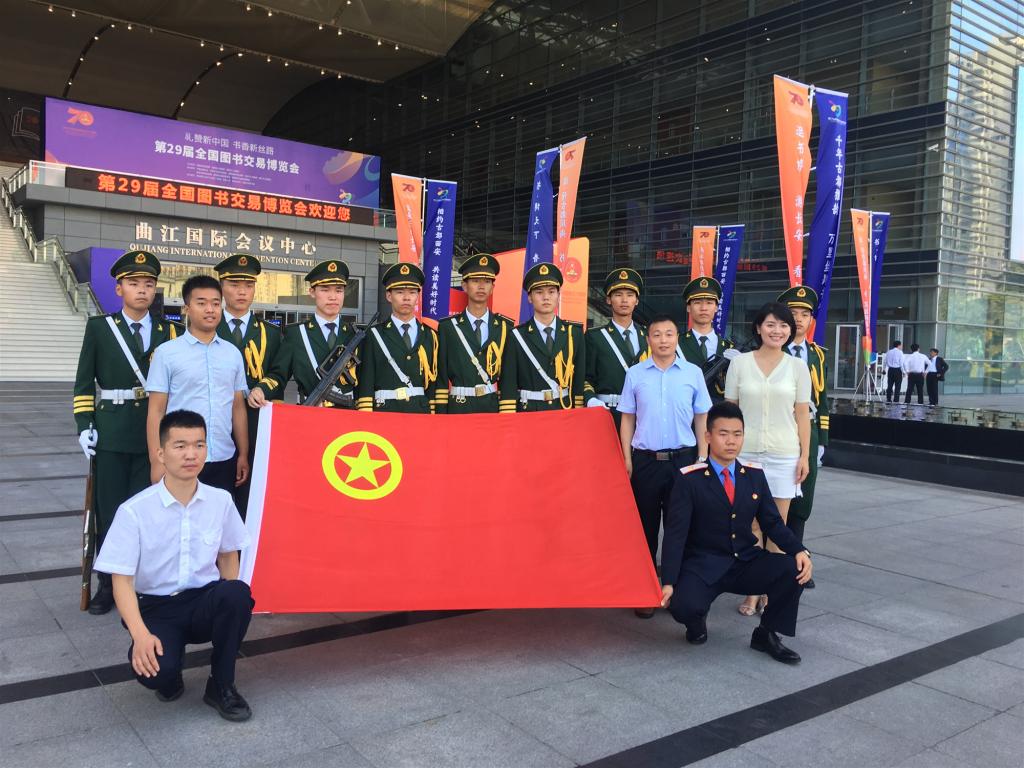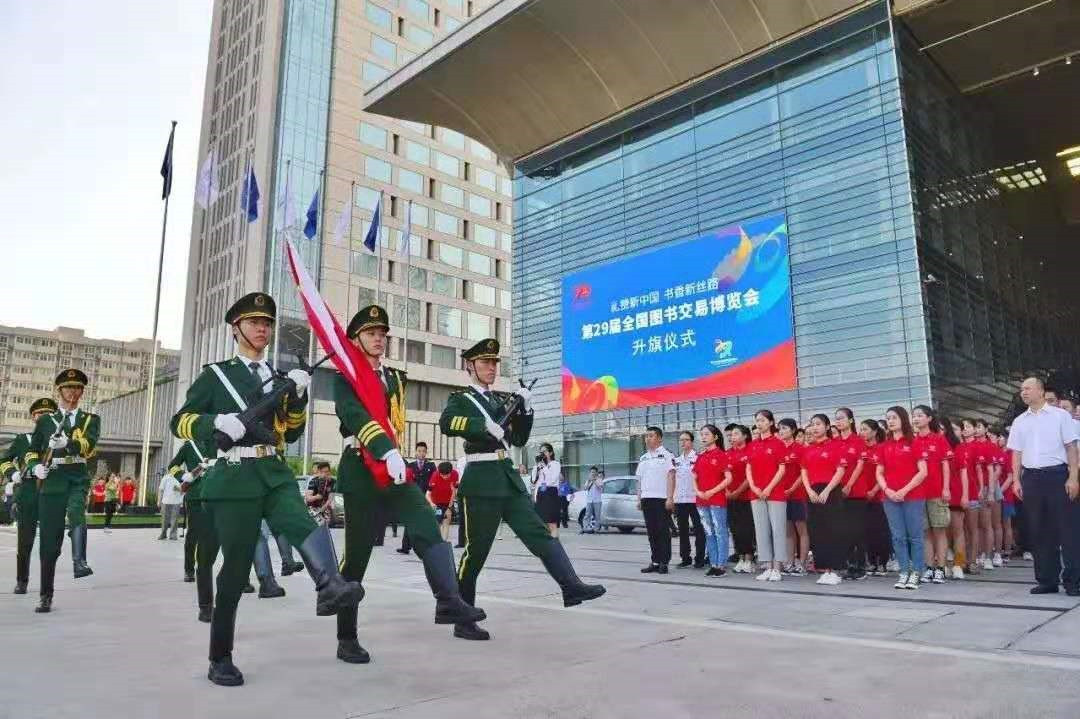 7月27日,第29届全国图书交易博览会开幕式升国旗仪式在西安曲江国际会议中心举行。书博会执委会成员、执委会办公室各工作组组长、部分来宾、省市展团代表、展销企业代表以及志愿者及展会工作人员共计约300人参加升国旗仪式。仪式由市委宣传部副部长廉宏伟主持。永利官网国旗护卫队应邀执行此次升国旗仪式任务。