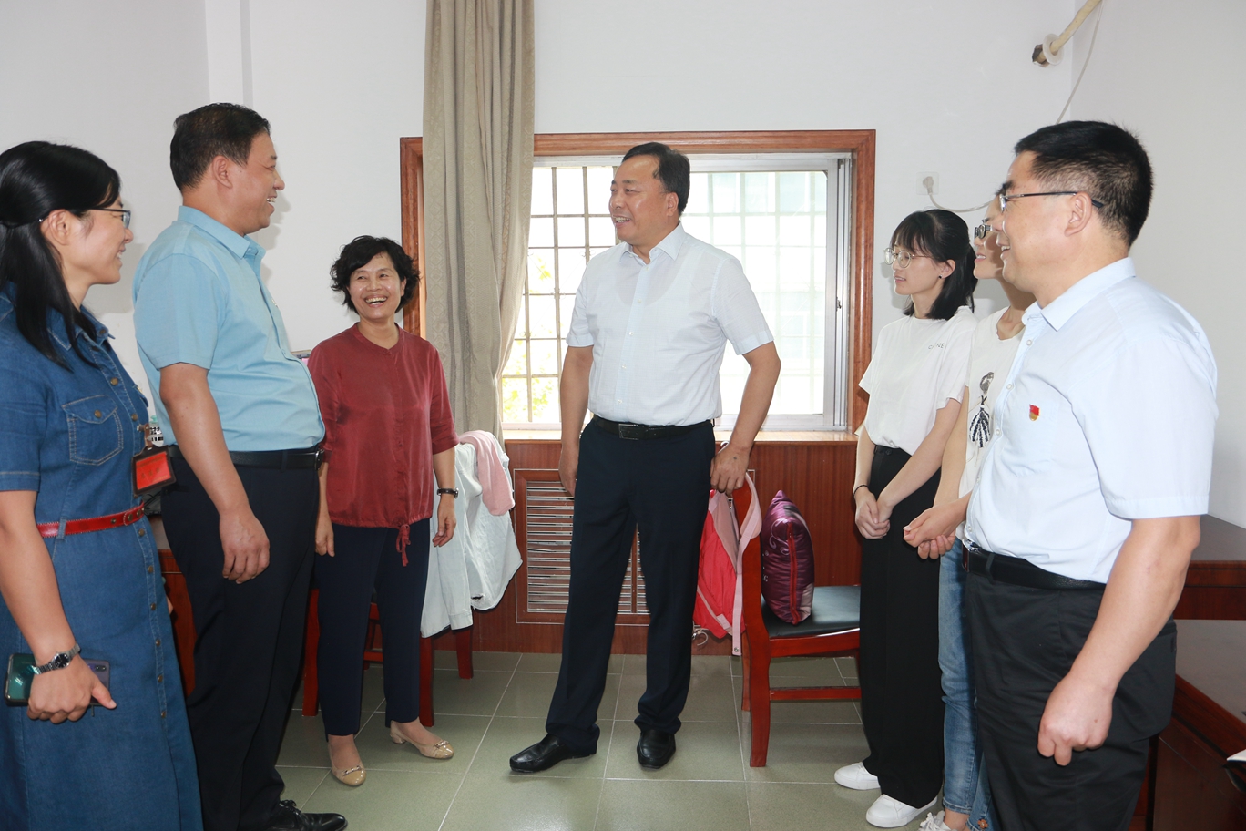 施利民还深入到两个校区的教室、宿舍、食堂、会议室等地,实地查看暑假期间的改造提升工作效果及新学期开学工作情况,对暑假期间坚守工作岗位的学院干部职工给予充分肯定。