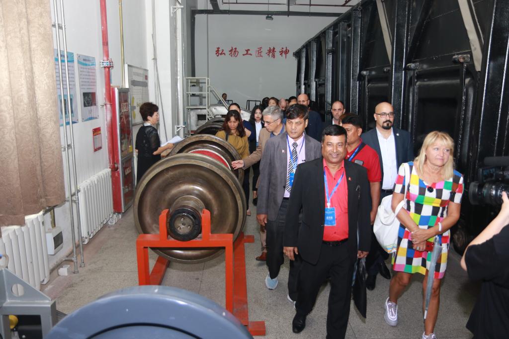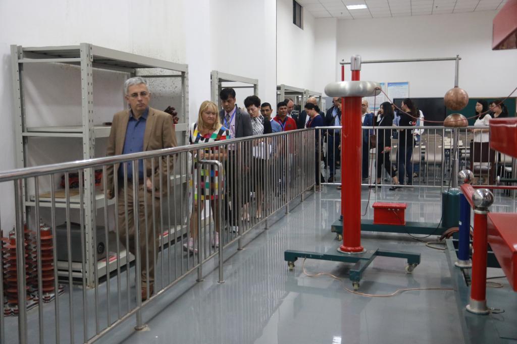 随后,为了便于翻译和参观,代表团分为三组,兴致勃勃的依次参观了电气工程学院、牵引动力学院和机电工程学院的实训室和实验设备。党委宣传部部长张家琪、电气工程学院院长李栋、牵引动力学院书记和晋秦、院长李益民、机电工程学院院长代礼前陪同参观。基础部英语教研室、国际交通学院俄语教研室负责英语和俄语讲解的翻译工作。