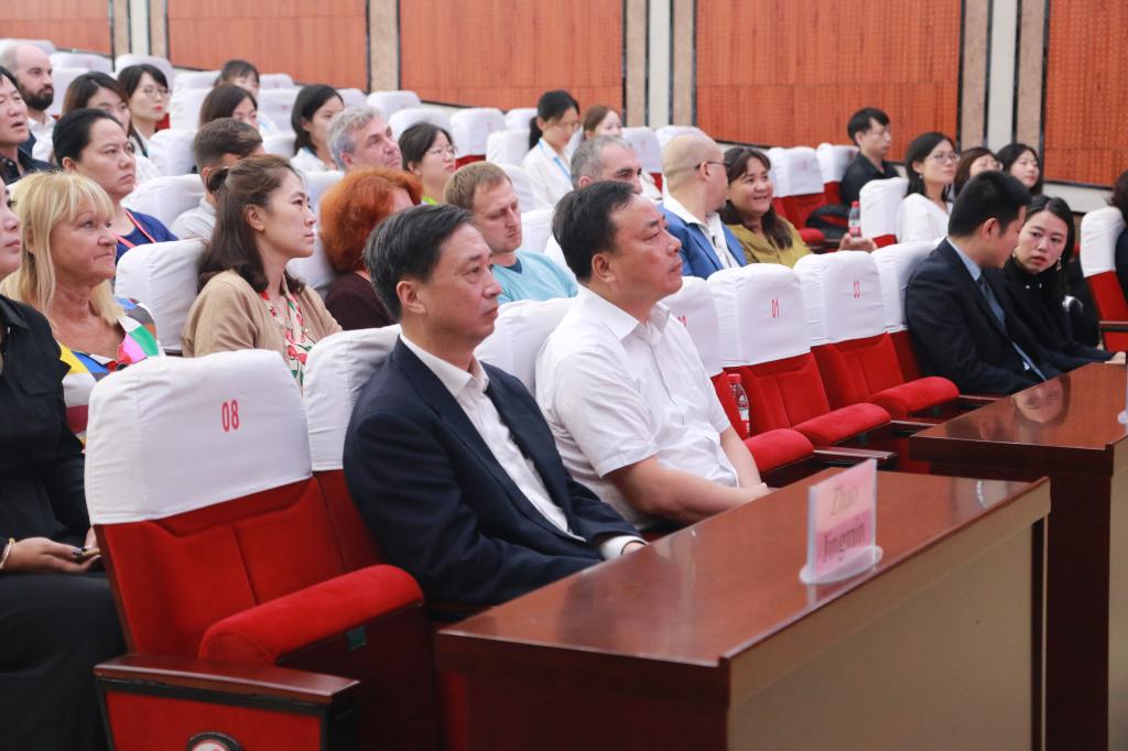 在阶梯教室,党委书记施利民会见了全体代表,并代表全校师生欢迎代表团的到来,副院长赵六杰主持见面会并致词。随后,代表团中来自韩国、吉尔吉斯斯坦、芬兰、尼泊尔、瑞典、希腊、加拿大、澳大利亚、俄罗斯等10多个国家的友好城市及友好交流城市代表约50名外宾共同观看了永利官网的宣传片。