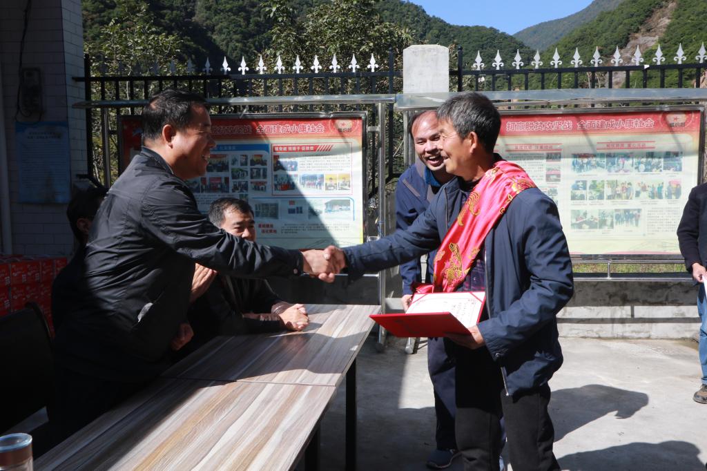在六合村委会,安学武代表学院为村中评选出的“明白老人”和“孝顺儿女”披红,并颁发证书。他勉励六合村全体村民要向四位模范人物学习,继续弘扬孝老爱亲的中华传统美德,共同建设家庭和睦、代际和顺、邻里和谐的社会主义乡风文明。