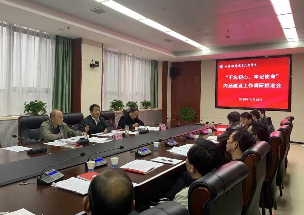 10月25日,学院副院长安学武主持召开“不忘初心,牢记使命”内涵建设工作调研推进会,相关院部负责人参加会议。