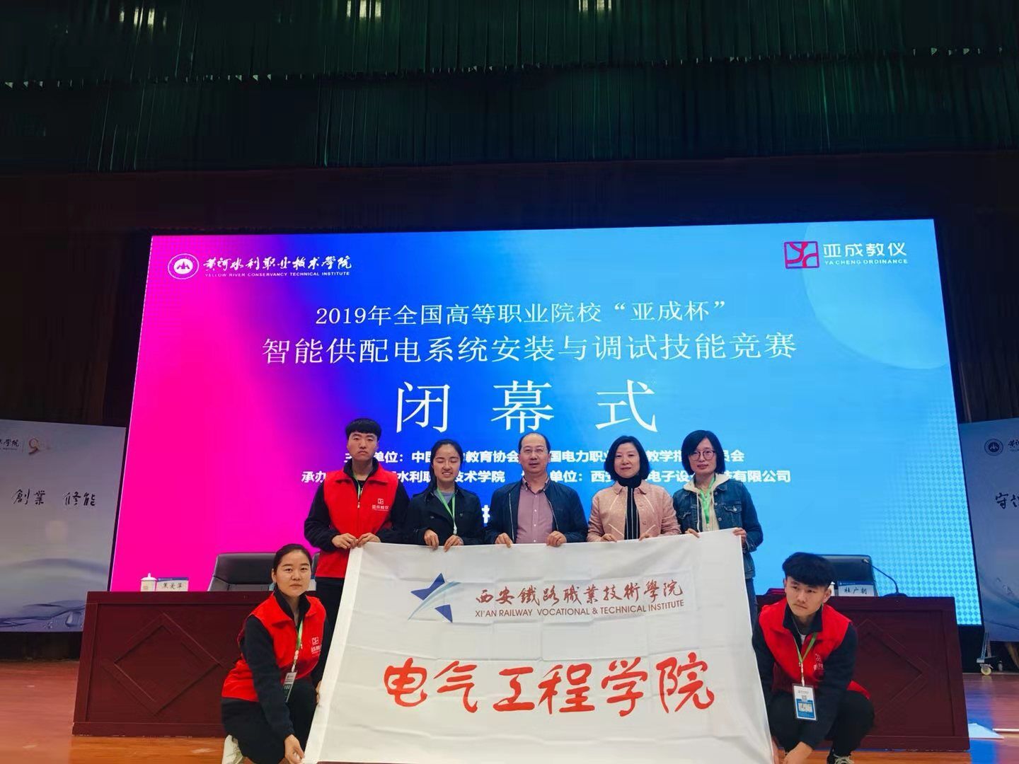 11月3日,2019年全国高等职业院校智能供配电系统安装与调试技能竞赛在黄河水利职业技术学院落下帷幕,由永利官网供用电教研室主任方彦教授带队,王锦、吴晓凤两位指导教师及曹奕凡、胡晨晨、毛磊三位参赛选手组成的代表队在此次竞赛中发挥出色,再次荣获“一等奖”,两位指导老师获得“优秀指导教师”称号。