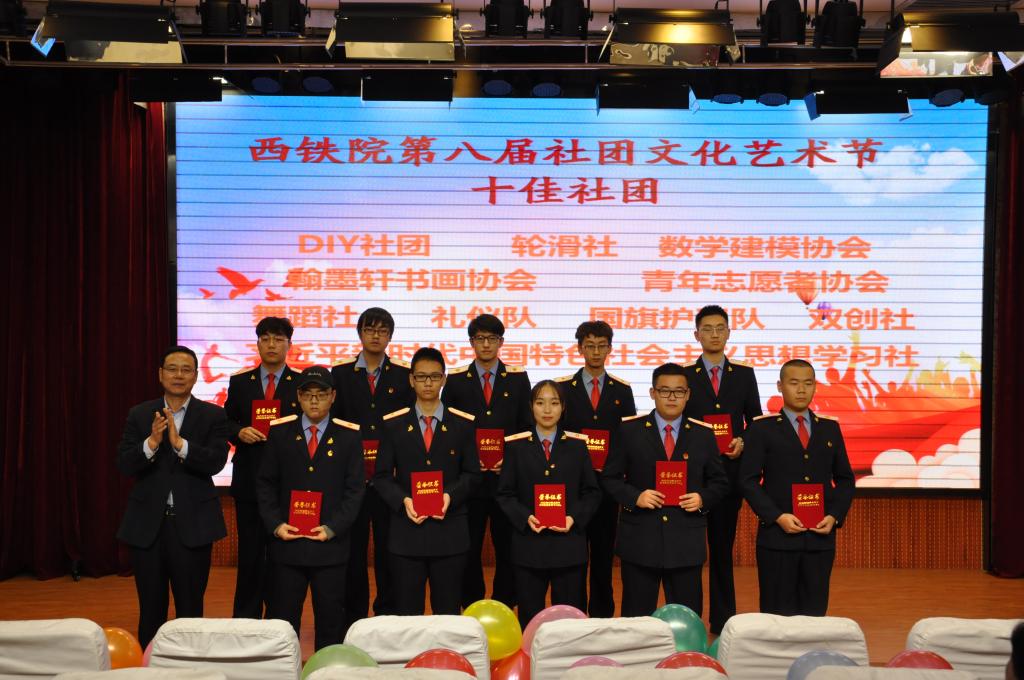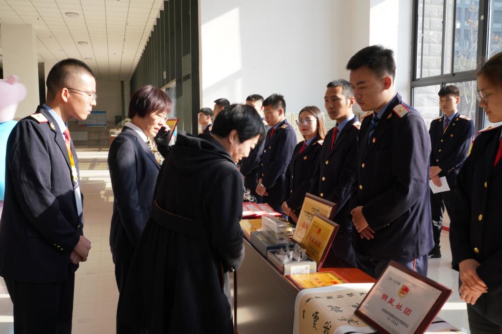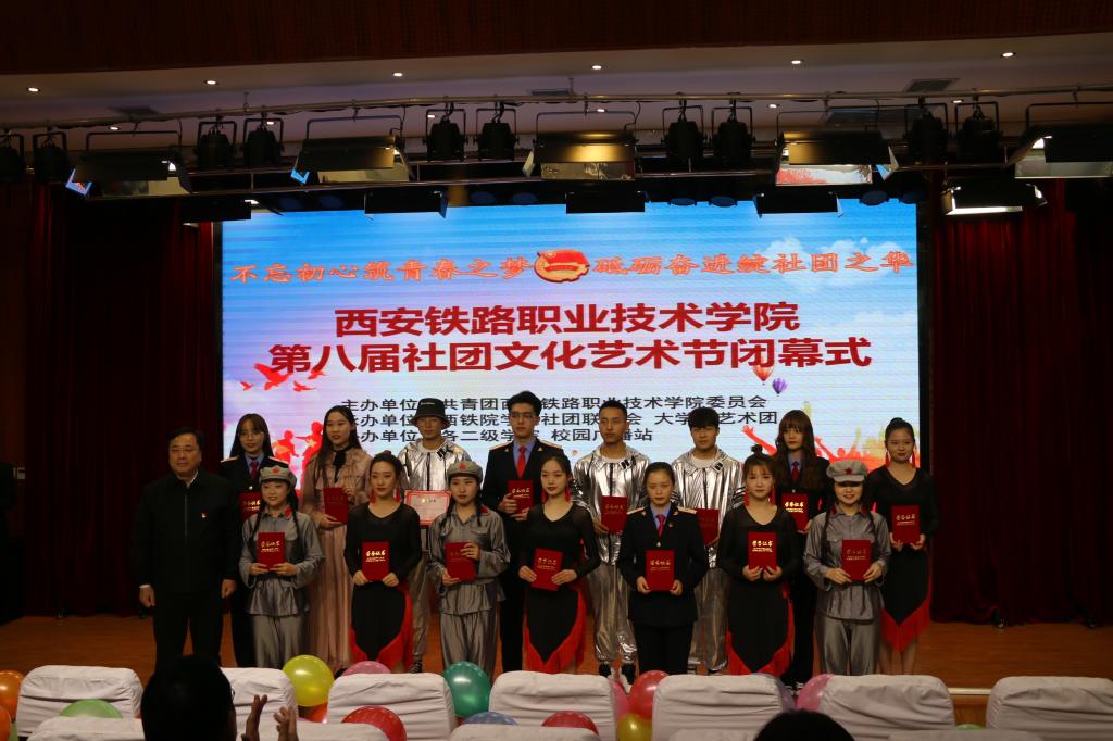 闭幕式上,施利民为在第二十九届陕西省大学生文化艺术节啦啦操大赛中获得全省九强优异成绩以及最佳人气奖的同学们颁发了荣誉证书。赵六杰为本届社团文化艺术节的十佳社团颁发了荣誉证书。