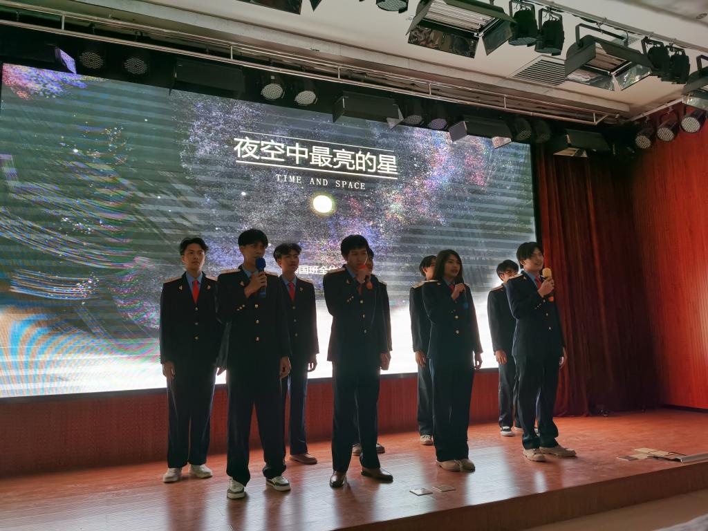在电气工程学院学习的9名泰国学生身穿中国铁路制服,用中文演唱了歌曲《天空中最亮的星》,赢得了师生们的阵阵掌声!