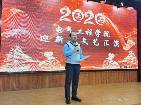12月18日下午,电气工程学院在港务校区举办迎新年文艺汇演。学院副院长安学武,团委书记张治平、党委学工部副部长高阿联、电气工程学院书记任建国、院长李栋及全体教师一同观看了演出,李栋致迎新贺词。