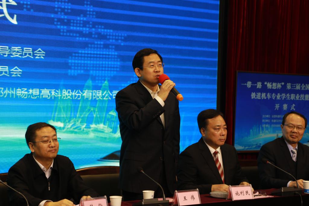 开幕式上,中国国家铁路集团有限公司劳动和卫生部职工教育处副处长、全国铁道职业教育教学指导委员会副主任韩钧、中国铁路西安局集团有限公司副总经理王国建、西安市教育局副局长闫秀斌、全国铁道行指委委员、铁道机车专业教学指导委员会主任董黎生、郑州畅想高科股份有限公司董事长冯献华分别致辞。西安市人民政府副秘书长王伟宣布大赛开幕。