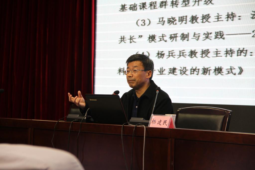 杨建民教授从教学成果奖的概念、教学成果奖申报、2018年度获奖成果解析等六个方面进行了系统阐述,通过解读“职教二十条”等国家重大政策方针为教学成果奖的申报提供了思路与方向,他分享了多年来国家级、省级教学成果奖申报的体会和感悟,并就教学成果的核心要素、成果范围、成果形式、应用效果、国家级教学成果奖申请书的写作等方面问题进行了详细的介绍。