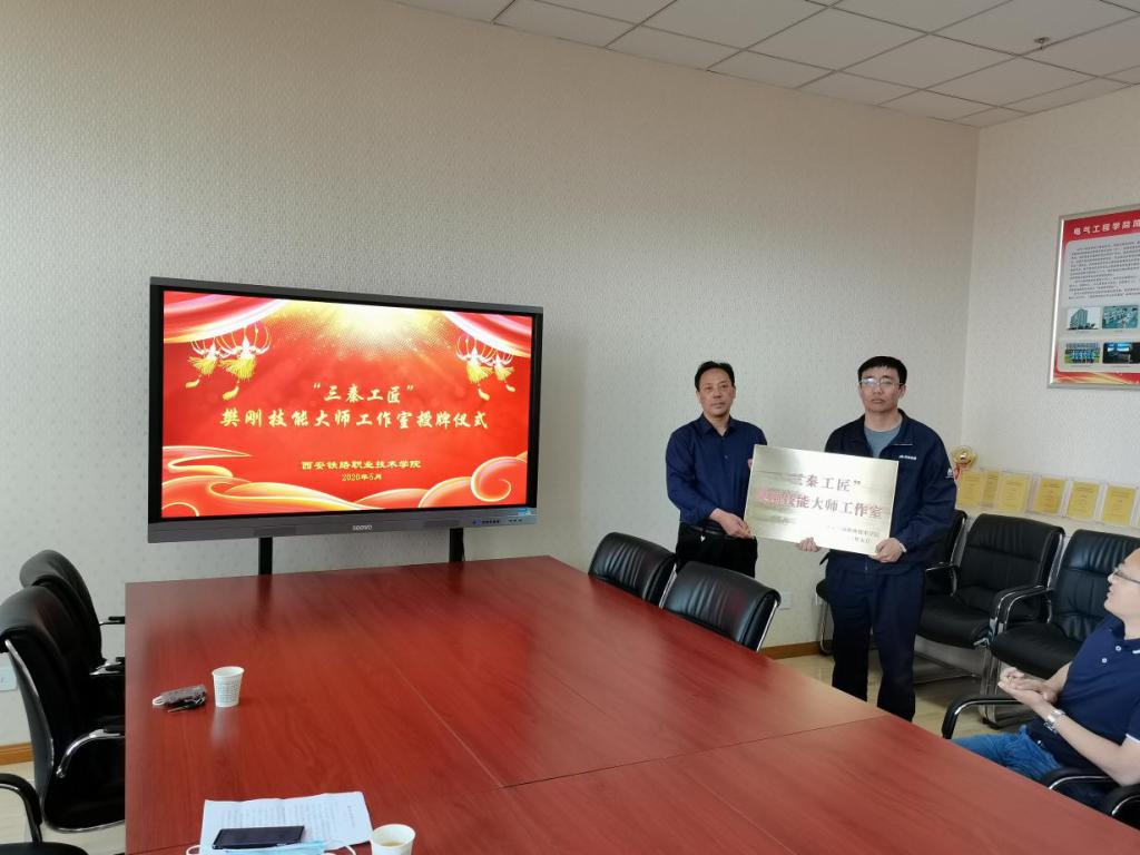 为大力弘扬工匠精神,推进双高建设任务,打造高素质高技能教师教学创新团队,助力铁道供电“省级一流专业”建设,5月15日上午,永利官网“三秦工匠”樊刚技能大师工作室授牌仪式在电气工程学院举行。永利官网校友中国神华能源股份有限公司神朔铁路分公司高级技师樊刚、学院副院长安学武、教师发展中心主任李贞伟、电气工程学院院长李栋、电气工程学院党总支书记任建国及部分教师参加了本次活动。