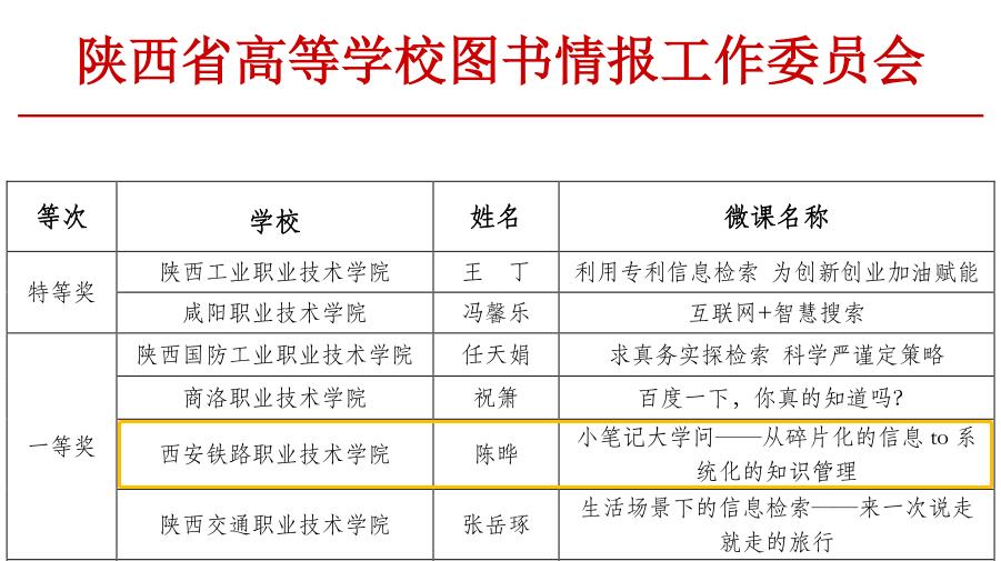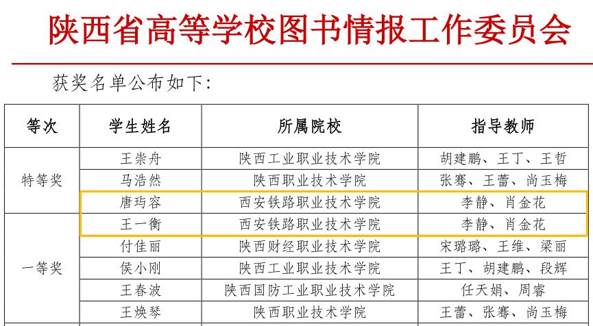 由陕西省高等学校图书情报工作委员会主办,陕西省高校图工委高职高专工作组承办,北京万方数据股份有限公司和北京方正阿帕比技术有限公司协办的2020年全国高职高专院校信息素养大赛陕西赛区比赛在咸阳职业技术学院圆满落幕,永利官网师生在学生个人赛与教师微课赛中喜获佳绩。同时永利官网荣获“优秀组织奖”。