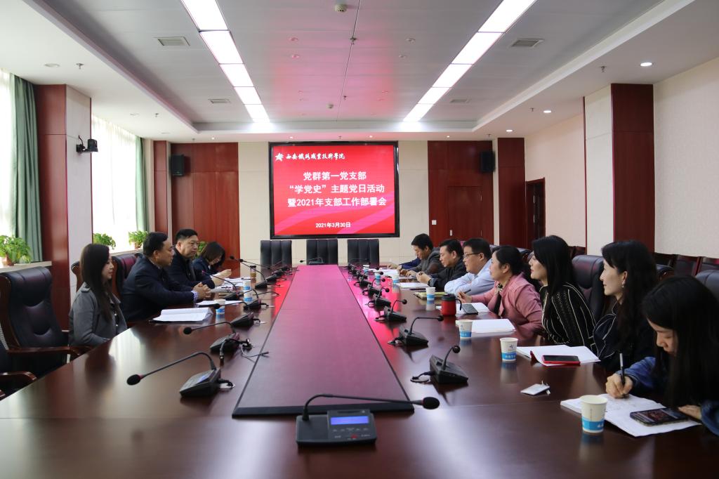 活动中,大家集中学习习近平总书记在党史学习教育动员大会上的讲话精神和学院党史学习教育动员大会精神,安排部署了支部2021年度支部工作任务,要求支部全体党员要以党史学习教育为契机,扎扎实实学党史、悟思想、开新局,要紧密结合学院今年十大重点任务,争做党的光荣传统的传承者、党的奋斗精神的继承人、推动落实学院各项工作的排头兵。