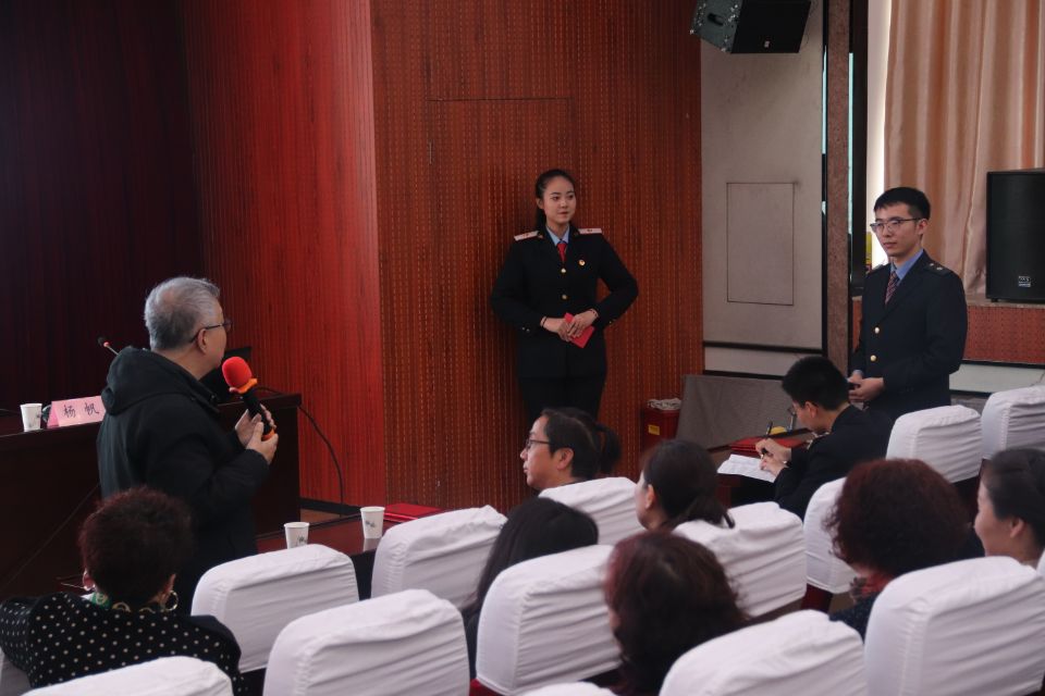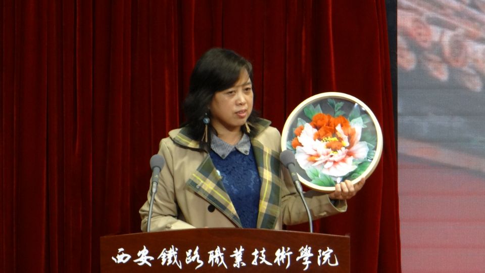学院副院长安学武及宣传部部长王琛、基础部主任孙明魁、语文教研室全体教师参加此次非遗讲座活动,参加活动的企业专家有西安市非遗保护中心特聘文化学者左其诚、西安匠心非物质文化遗产研究院副院长杨帆、西安市如意面花有限公司董事长刘宏斌以及来自西安市非物质文化项目传承人代表。