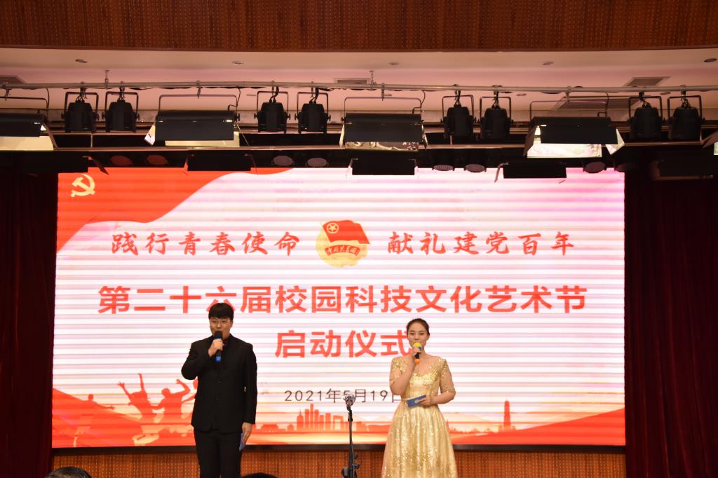 开幕式上,党委学生工作部部长郭小莉宣读学院第26届校园科技文化艺术节活动方案,学院领导施利民、邓耀斌以手掌点亮屏幕的方式启动学院第二十六届校园科技文化艺术节。