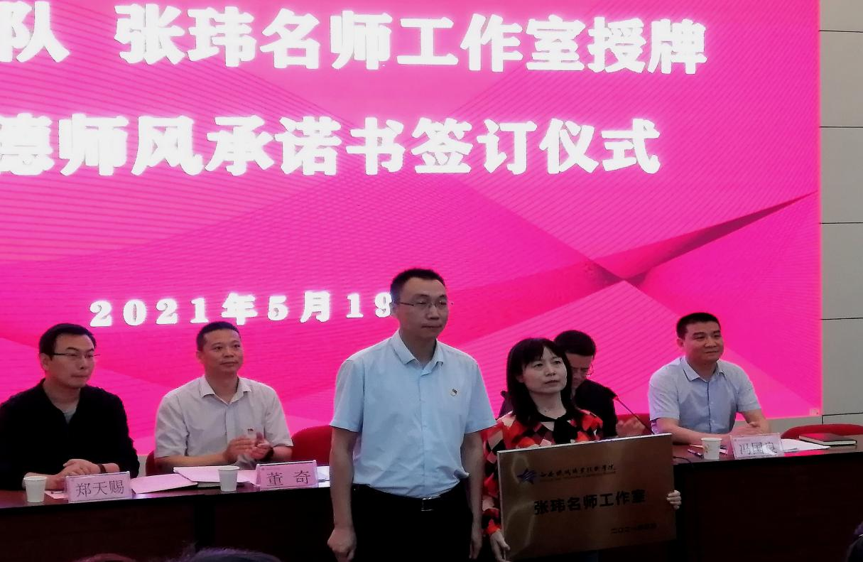 邓轩向两个教师教学创新团队授牌,向张玮名师工作室授牌。高嵘华代表教学创新团队发言,她表示作为职业院校的教师,一是要坚守专业精神、职业精神和工匠精神,践行社会主义核心价值观,以德立身,以德立教,构建课程思政的大格局;二是要通过校企合作加强学院教师与企业间的相互交流,发挥名师工作室与技能大师工作室的作用,通过技术创新解决实际问题。