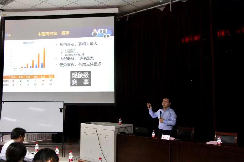 随后,董小泰为与会师生做了专题培训,他依据教育部、省教育厅大赛文件,详细解析了今年大赛在办赛内涵、赛道设置、项目类型等方面产生的变化;结合永利官网及兄弟院校过往六届参加“互联网+”大赛取得的成绩,深入分析了永利官网今年参加“互联网+”大赛面临的机遇与挑战;结合自己“互联网+”大赛丰富的评审经验,讲解了大赛的评审规则和评判标准,分享了项目获奖的制胜关键,并从规则研读、题目甄选、团队组建、逻辑梳理、素材补充、网评资料、路演答辩等方面分七步讲授了备赛方法及备赛策略。培训过程中,董小泰旁征博引、妙语迭出,为全院师生呈现了一场精彩的备赛讲座。