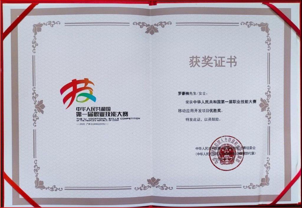 在中华人民共和国第一届职业技能大赛中,永利官网电子信息学院通信技术专业学生罗豪楠,以“移动应用开发”项目陕西省选拔赛第一的成绩代表陕西省参赛,最终荣获全国“优胜奖”。按有关规定,被晋升技师(二级)职业资格或职业技能等级。