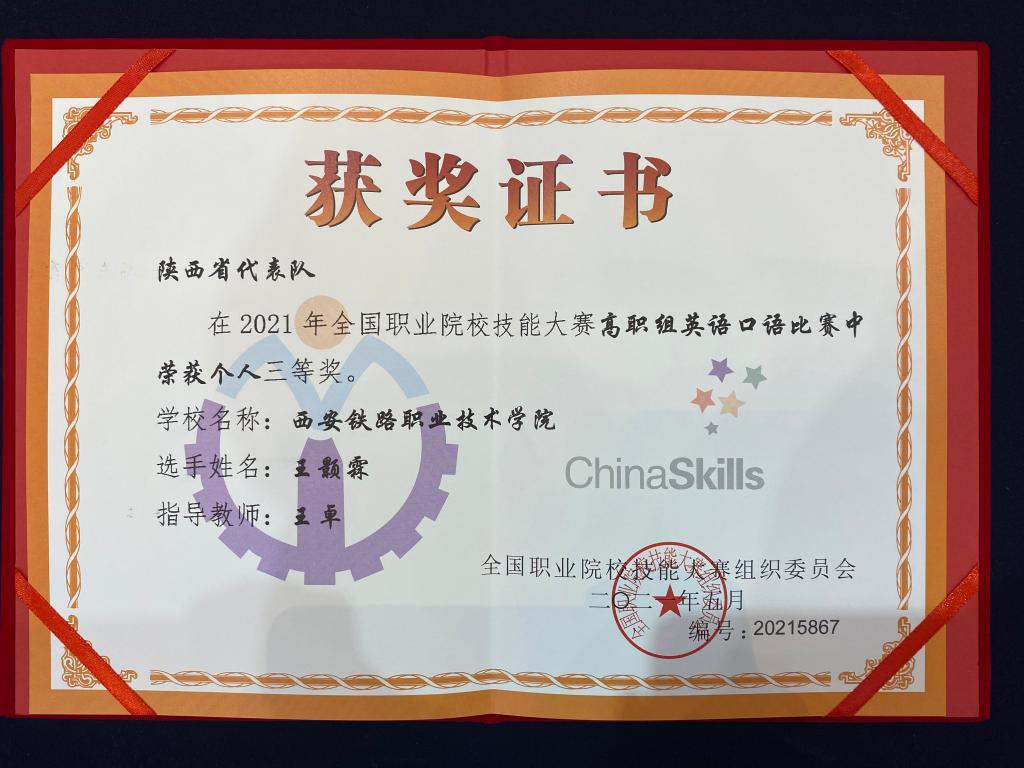 6月16日至18日,由教育部、国家发展和改革委员会等36家有关部委、省市和协会主办,海南省教育厅、文昌市人民政府等5家单位协办的2021年全国职业院校技能大赛高职组英语口语赛项在海南文昌成功举行。永利官网土木工程学院工程测量2001班学生王颢霖以优异的表现获得三等奖的好成绩。