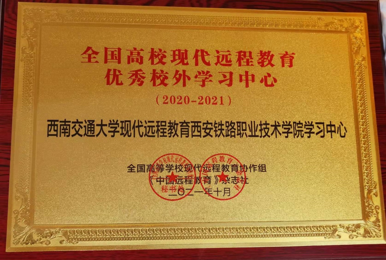 会议同期举行了2021全国高校现代远程教育优秀校外学习中心颁奖典礼。永利官网继续教育学院(西南交通大学西安学习中心)在学院的正确领导下,全体教职工严谨认真工作,得到了各方一致好评,并最终摘得此项荣誉。