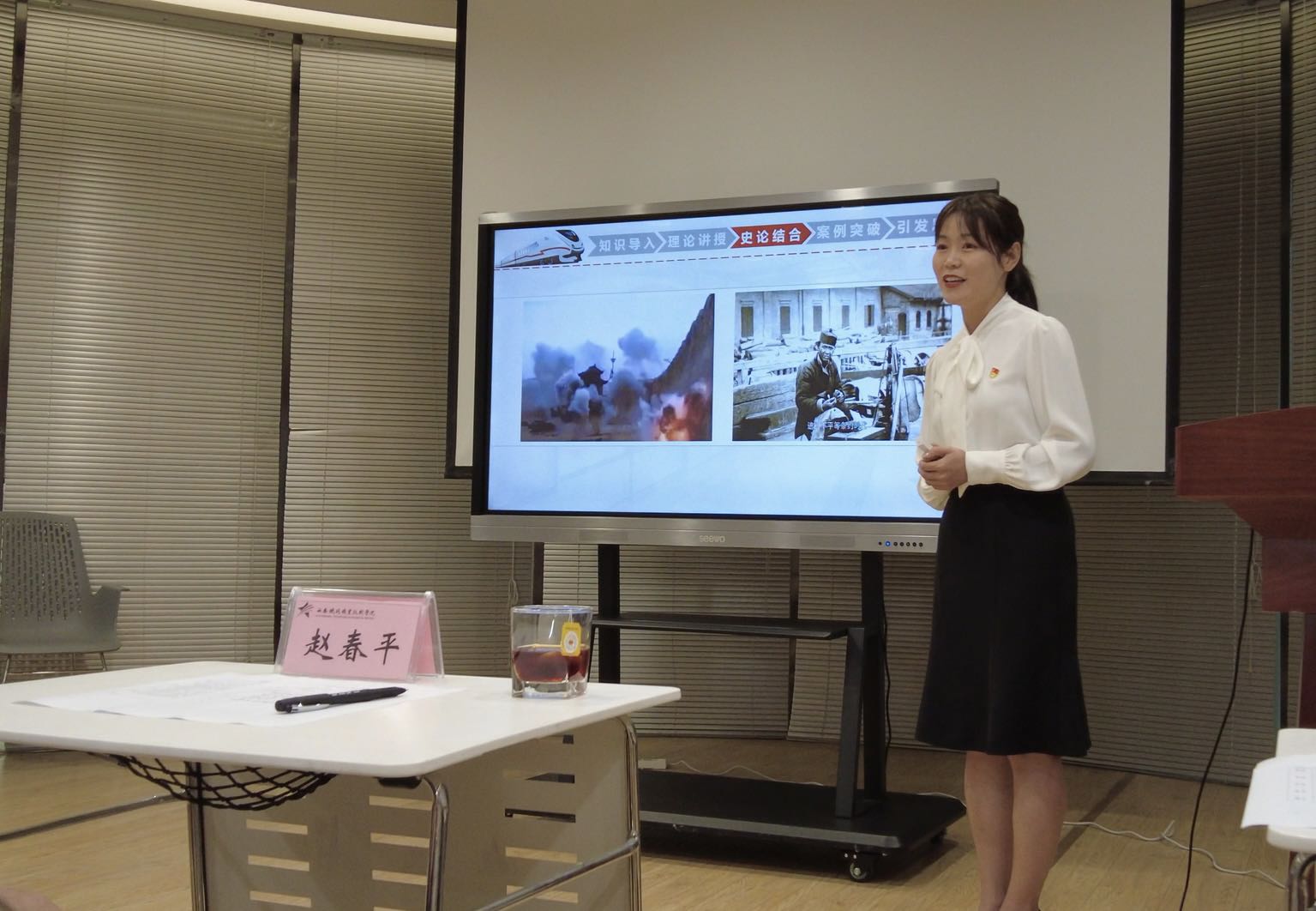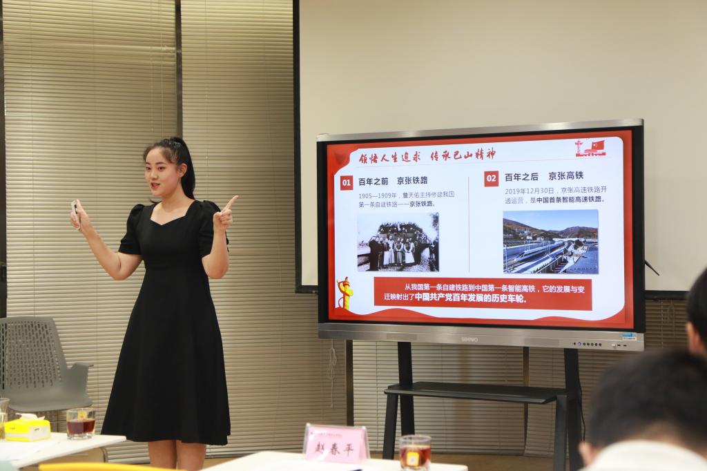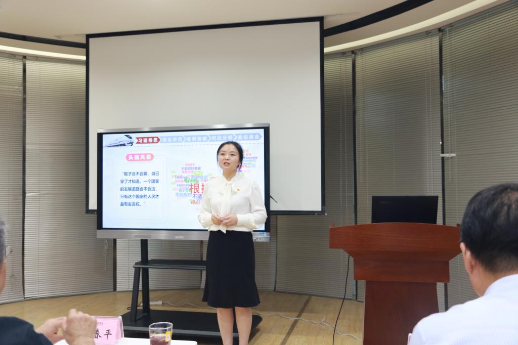 在教学观摩展示环节,获得2021年陕西省高校教学能力大赛二等奖的张赪、邢卫红、黄旌芮、刘艺筱教师团队依次为在场的各位老师展示了获奖作品《“五位一体”绘蓝图 同“轨”共筑中国梦》。获得2021年陕西省高校思政课教师“大练兵”比赛“教学标兵”称号的田婵媛,展示了参赛作品《中国革命道德历久弥新》,获得2021年陕西省高校思政课教师“大练兵”比赛“团队能手”称号的何苗和学生张王琦,展示了参赛作品《领悟人生追求 传承巴山精神》。获奖教师将比赛过程原景重现,与各位老师互相学习交流,为后续各项比赛提供丰富的比赛经验,不断提升永利官网思政课教学质量和教学水平。