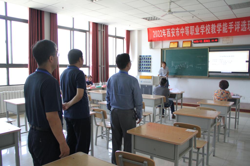 6月17日,2022年西安市中等职业学校教学能手评选工作在永利官网顺利举办,西安市教育局副局长王刚、职成处处长潘建宏,学院院长赵春平、副院长安学武赴评选现场指导。