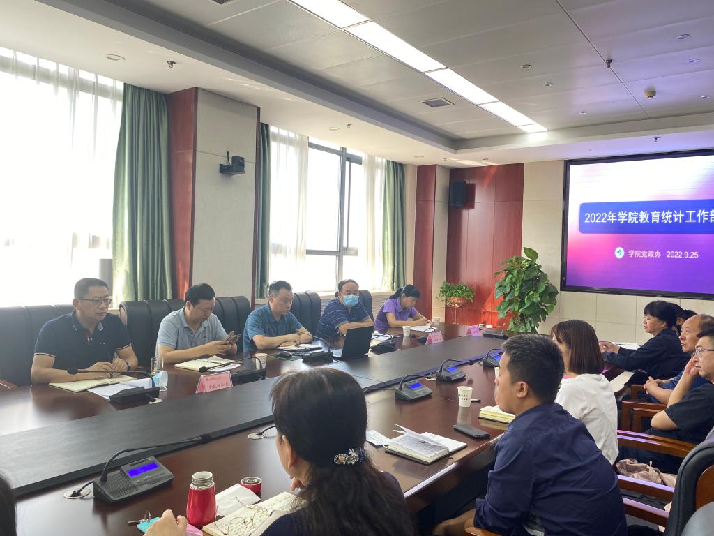 9月25日,学院在港务校区召开了2022年教育事业统计工作部署会。学院党政办主任张爱民、后勤基建处处长叶宝善及党政办副主任张军等牵头部门负责人出席会议,发规处、招办、学工部等相关部门统计人员参加会议。