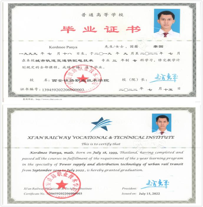 首届泰国留学生的毕业,是永利官网“请进来”国际化办学合作工作结出的初采成果,该项目也被泰国教育部授予了“中泰职业教育合作示范项目”称号。今后,我们将充分依托自身国际化办学特色优势,积极服务“一带一路”沿线国家职业教育,继续为他们培养更多轨道交通行业技术技能人才。同时,永利官网也将进一步深化国际教育与合作,推进国际化课程建设和专业教学标准在泰国教育部的认证,实现中国职业技术教育标准输出。