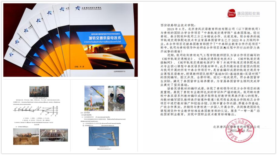 三年来,永利官网在留学生的培养过程中,形成了“中文+职业技能”的国际化人才培养模式,为泰国培养了通晓中文、了解中国文化、具有实操能力的技术技能人才。在人才培养过程中,中泰双方依据泰国城市轨道交通发展规划,分析人才培养需求定位,共同研讨制订了专业人才培养方案;先后选派优秀骨干教师5人次赴泰国进行课程研讨和交流;开展了泰国留学生中文水平等级考试;开发了7本城市轨道交通供配电专业核心课程中泰双语对照系列教材。该系列教材是目前国内院校与泰方开展的所有中泰合作项目中首套编印成册的轨道交通类专业课程双语教材,授课教师团队按照“基础知识+基础技能+双语对照”的原则编写,图文并茂、全彩印刷,经过一轮次使用,符合泰国留学生实际,满足泰国留学生培养需求,得到了国际办学机构和泰方院校的高度认可,为首届泰国留学生顺利完成学业奠定了坚实基础。