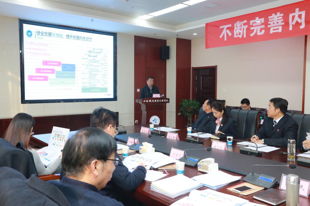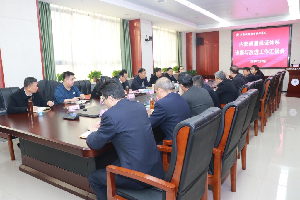 12月20日上午,诊改工作汇报会在办公楼五楼第三会议室举行,专家组组长、全国诊改专委会副主任徐建平教授,专家组副组长、陕西省高职诊改专委会副主任张权民教授,陕西交通职业技术学院党委书记杨云峰教授,陕西工业职业技术学院副书记、副院长刘永亮教授,全国诊改专委会委员丁敬敏教授,陕西铁路工程职业技术学院人事处处长刘超群教授,陕西工业职业技术学院教务处处长段峻副教授,陕西交通职业技术学院质控办主任崔选盟教授出席汇报会,西安市教育局副局长李晋芳、学院领导及相关职能处室、二级学院负责人参加汇报会,学院副书记邓耀斌主持会议。