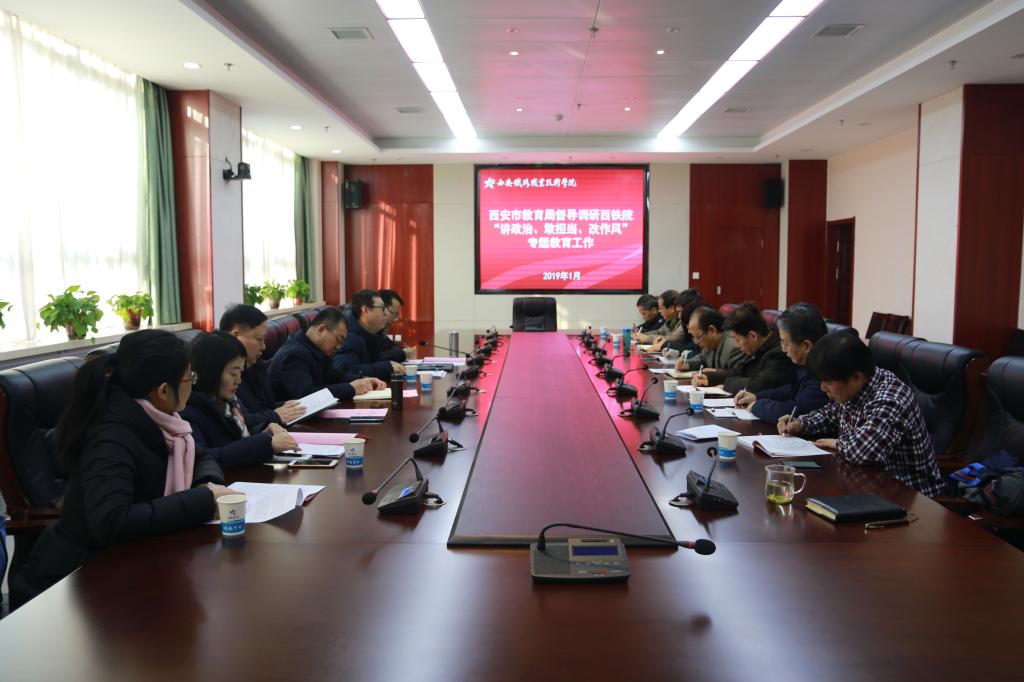 1月21日上午,西安市教育局“讲政治、敢担当、改作风”专题教育督导工作组一行6人对304am永利集团官网“讲政治、敢担当、改作风”专题教育开展情况进行了督导检查。学院“讲、敢、改”工作领导小组成员、二级学院党总支书记参加了会议。