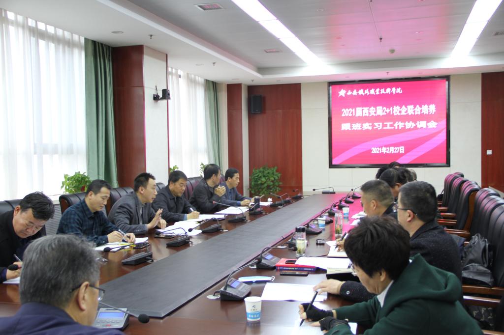 2月27日,学院2021届中国铁路西安局集团有限公司(以下简称“西安局”)2+1校企联合培养跟班实习工作协调会在港务校区五楼第三会议室召开。会议由副院长安学武主持,党委副书记、纪委书记邓轩出席会议并讲话,教务处、学生工作部、就业指导中心负责人及各二级学院院长、书记、相关人员等参加会议。