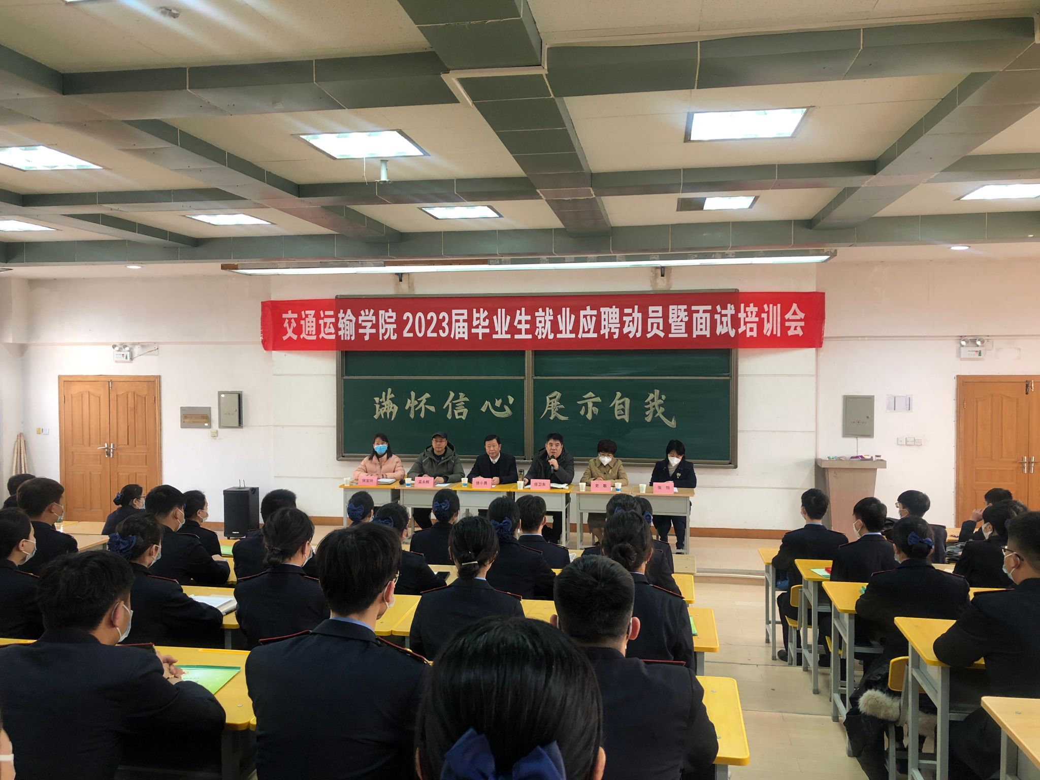 为认真贯彻党的二十大精神,加强对毕业生就业的指导与帮扶,进一步提升学院毕业生就业质量,助力2023届毕业生就业工作的顺利开展,交通运输学院于2月5日上午9点在龙首校区6号楼阶梯教室分批次召开了2023届毕业生就业应聘动员暨面试培训会。参加会议的有交通运输学院院长徐小勇、党总支书记任卫东、学工办主任孟永辉、高乘教研室专业老师史歌和张怡、就业工作专项辅导员侯宝玲,会议由孟永辉主持。