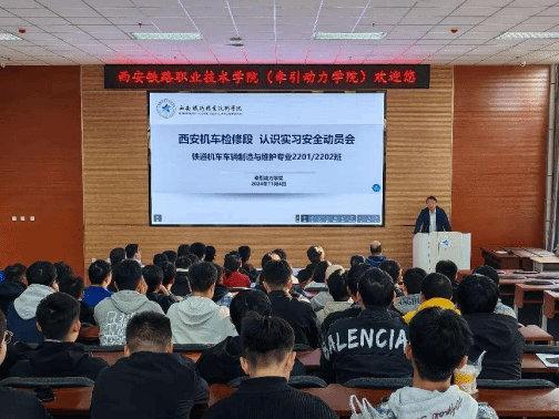 11月4日下午,牵引动力学院在阶梯教室105召开毕业班学生赴西安机车检修段开展生产实习安全动员会。参加本次会议的有牵引动力学院院长李益民教授、铁道机车车辆制造与维护专业教研室主任朱慧勇、铁道机车车辆制造与维护专业骨干教师(原专业带头人)刘宏利高级工程师、教师张锦涛及铁道机车车辆制造与维护专业2022级全体学生,会议由朱慧勇主持。