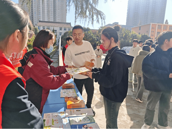 活动现场,自强综合管理处办公室主任窦蓉、医务室医护人员、大兴社区卫生服务中心工作人员一起为学生发放“西小艾”艾滋病防控手册,并且现场答疑解惑,现场气氛活跃,学生在轻松愉快的氛围中获取艾滋病防治知识。