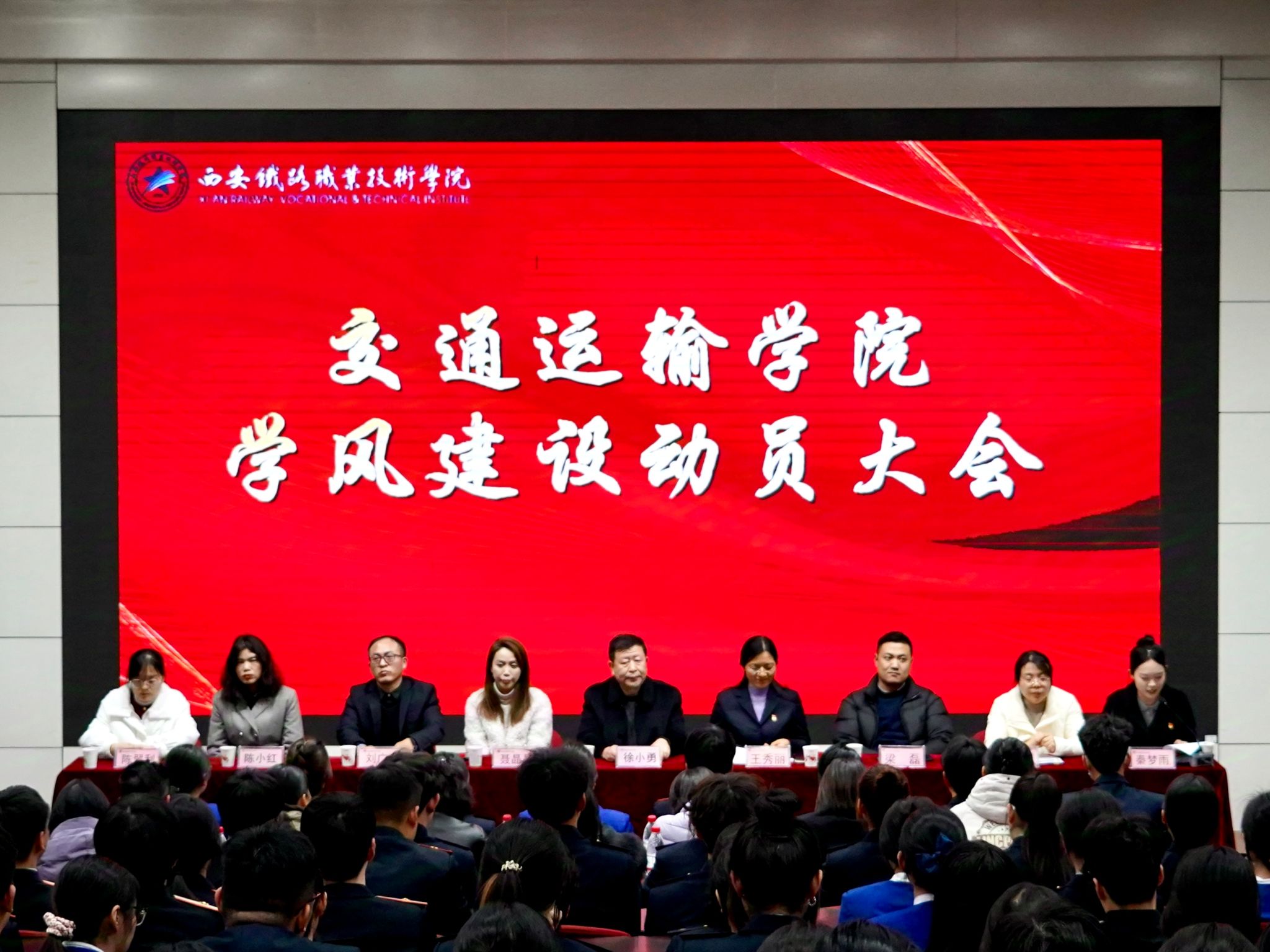 为发挥榜样示范引领作用,促进学院优良学风建设,营造积极向上的学习氛围,12月19日下午,交通运输学院在阶梯教室召开了2023/2024学年第二学期创先争优表彰暨学风建设动员大会。交通运输学院院长徐小勇、党总支书记王秀丽、学工办主任梁磊、院办副主任聂晶晶、各教研室主任、专任教师、辅导员、班主任及大一大二学生代表共280余人参加。会议由秦梦雨老师主持。