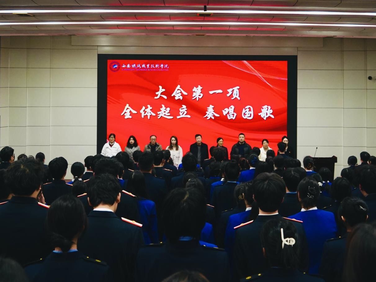 本次会议在庄严的国歌声中拉开帷幕,全体师生肃立,行注目礼。