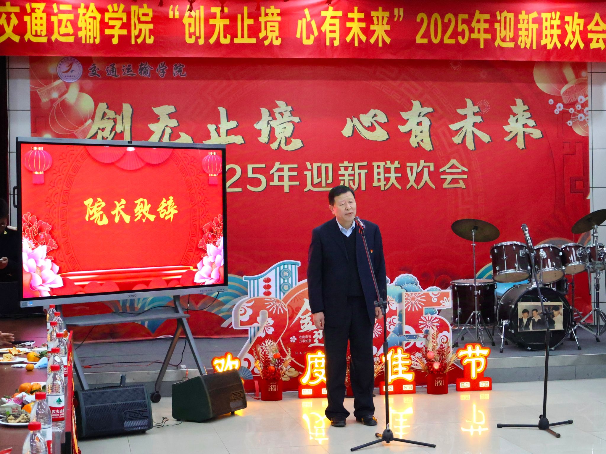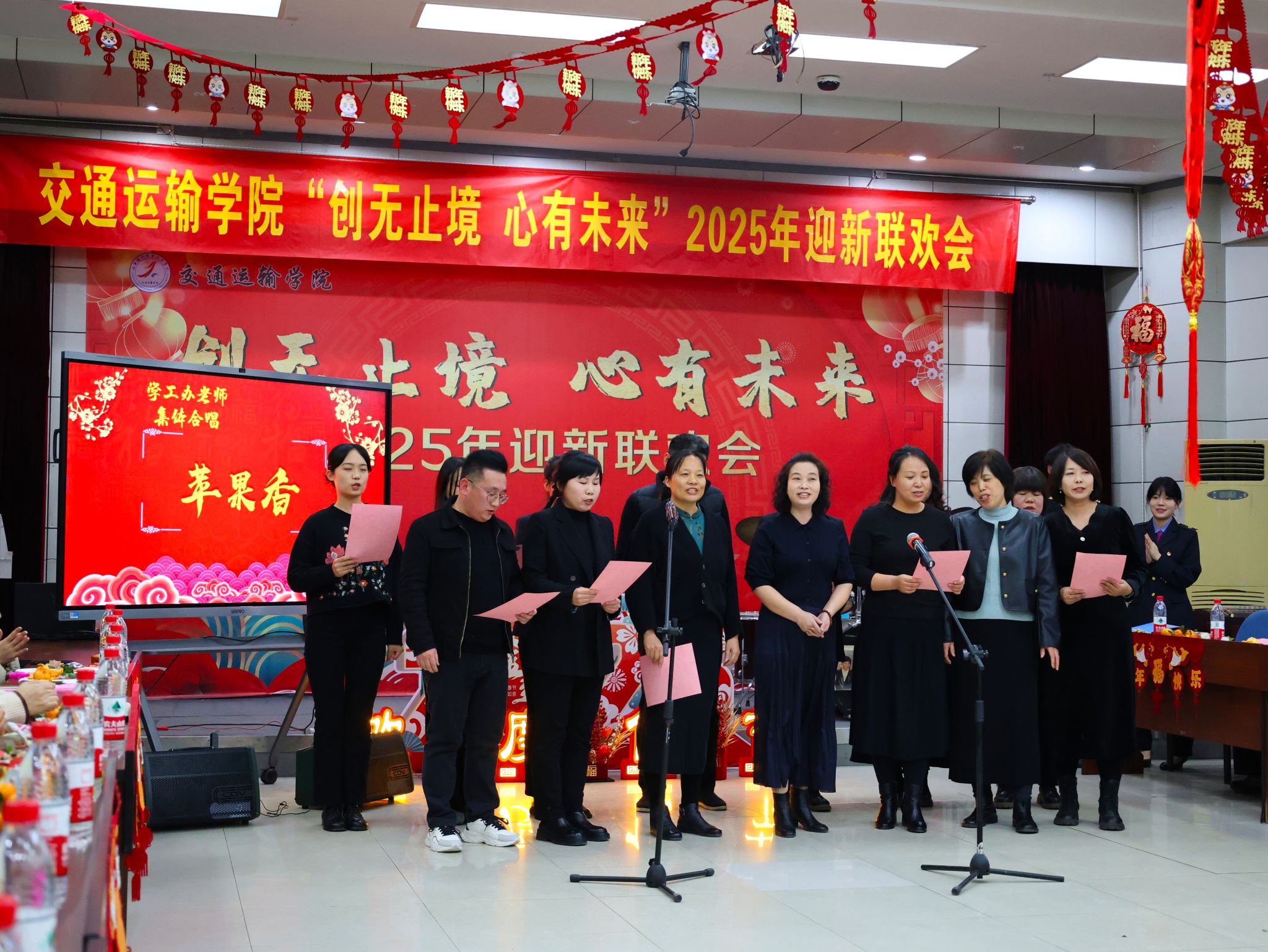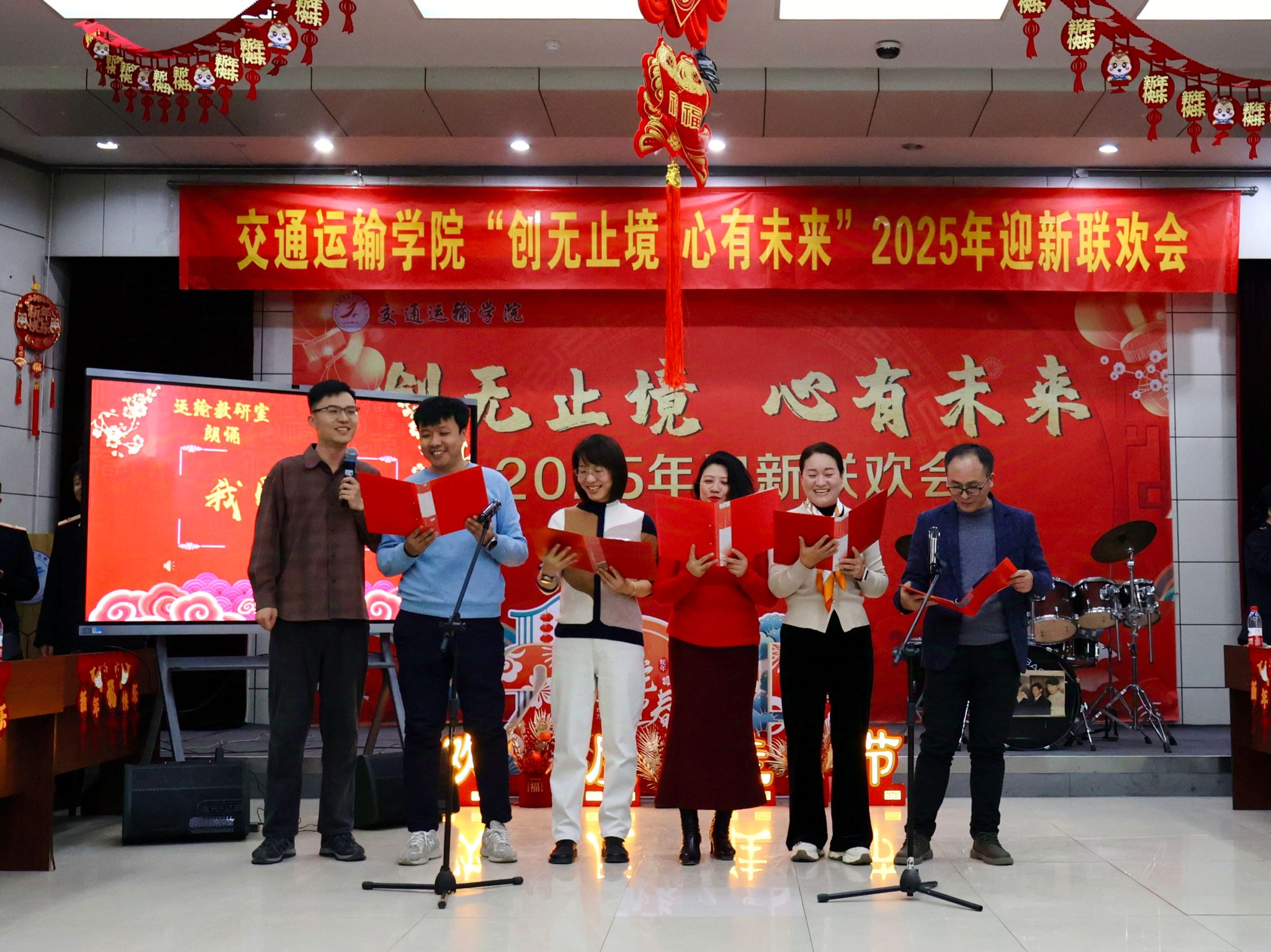 在这辞旧迎新的美好时刻,为加强教职工间的交流与互动,增强团队凝聚力,12月27日下午,交通运输学院在自强校区大电教举办了“创无止境,心有未来”2025年迎新联欢会。交通运输学院全体教职工及自强校区各部门代表参加了此次活动。