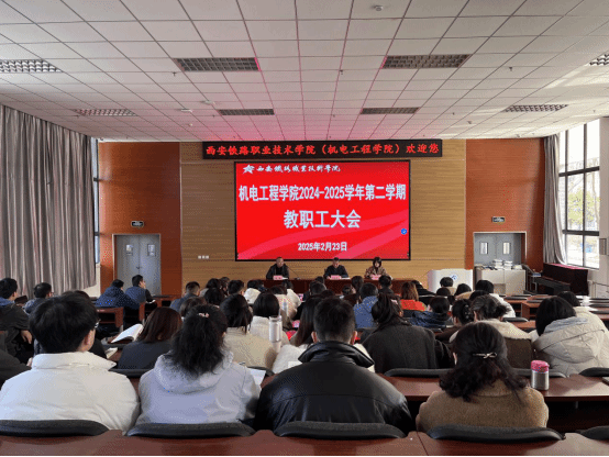 2月23日,机电工程学院在阶梯教室召开2024-2025学年第二学期新学期教职工大会,旨在收心聚力,全面部署新学期各项工作。会议由学院副院长郭峰主持,全体教职工参会。