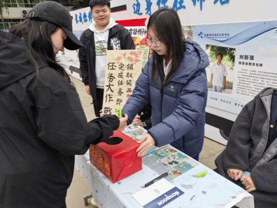 盲盒区充满了神秘与惊喜,同学们纷纷上前抽取志愿任务盲盒。任务包含清洁校园以及完成志愿帮扶活动等。为鼓励更多同学加入志愿服务行列,活动设置了“志愿汇”APP 注册专区。注册成功的同学即可领取一份小礼品,众多同学纷纷驻足扫码注册。这一举措不仅为同学们参与志愿服务提供便利,也让更多人了解到志愿服务的广阔平台,为今后开展常态化志愿服务奠定基础。