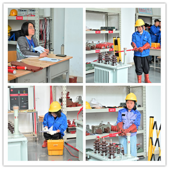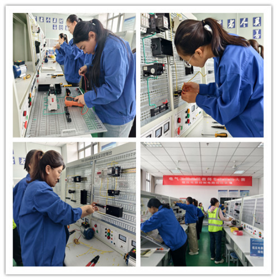 比赛现场气氛紧张而热烈,参赛教师们全神贯注、各显身手。在更换10KV跌落式熔断器熔丝项目中,老师们凭借扎实的专业知识和丰富的实践经验,熟练地操作着各种工具,严格按照规程进行熔断器熔丝的更换。从安全措施的布置到熔断器的拆卸,从熔丝的更换到设备的恢复,每一个环节都一丝不苟、精准无误;在低压电器控制电路接线项目中,严格按照规程进行低压电器控制电路的接线工作,接线的规范性到设备的调试,每一个环节都一丝不苟。