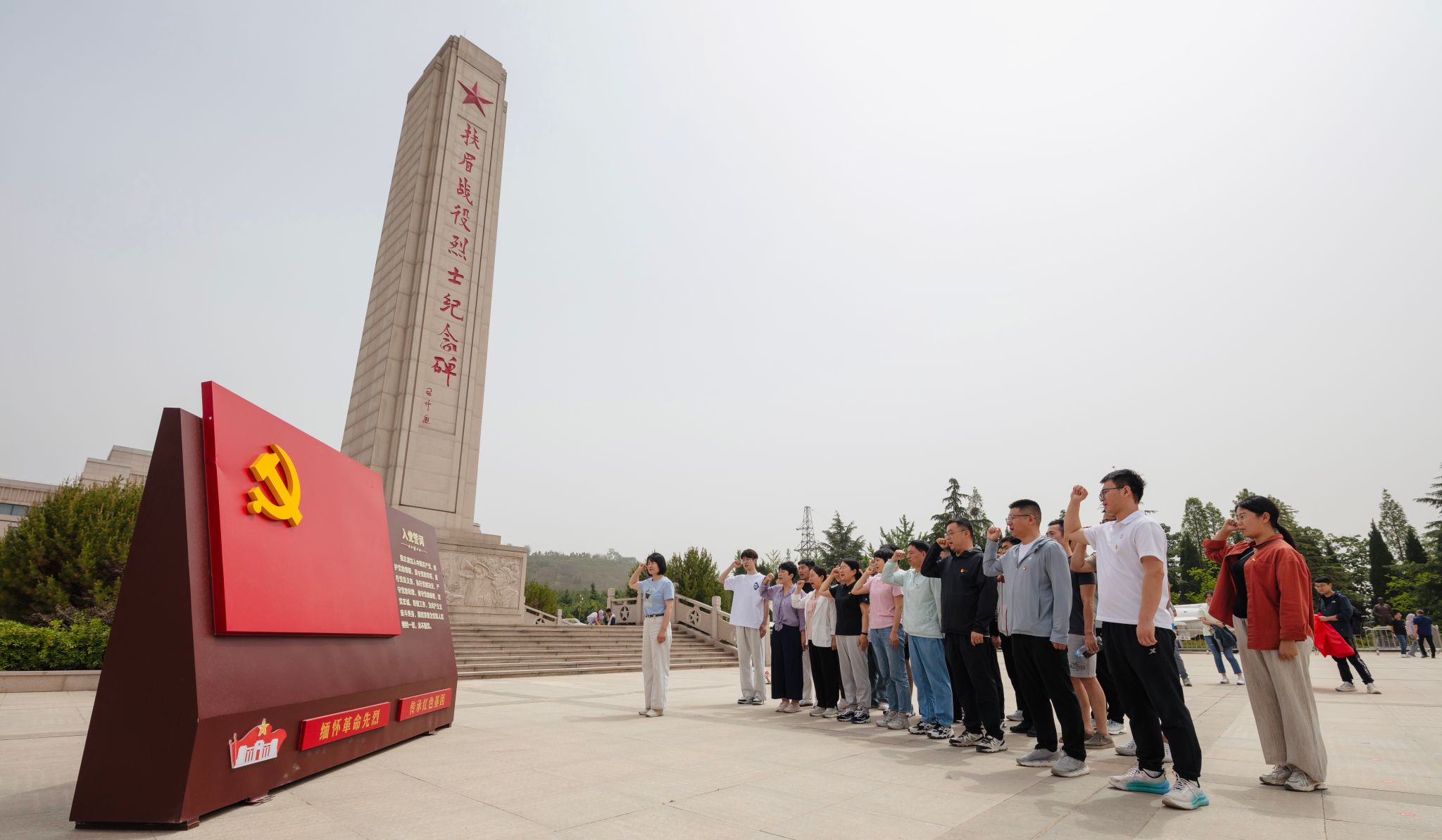 在庄严肃穆的烈士纪念碑前,机电工程学院党总支书记张秀红带领全体党员重温入党誓词,铿锵誓言响彻云霄,传递着对革命先烈的深切缅怀与传承使命的坚定信念。