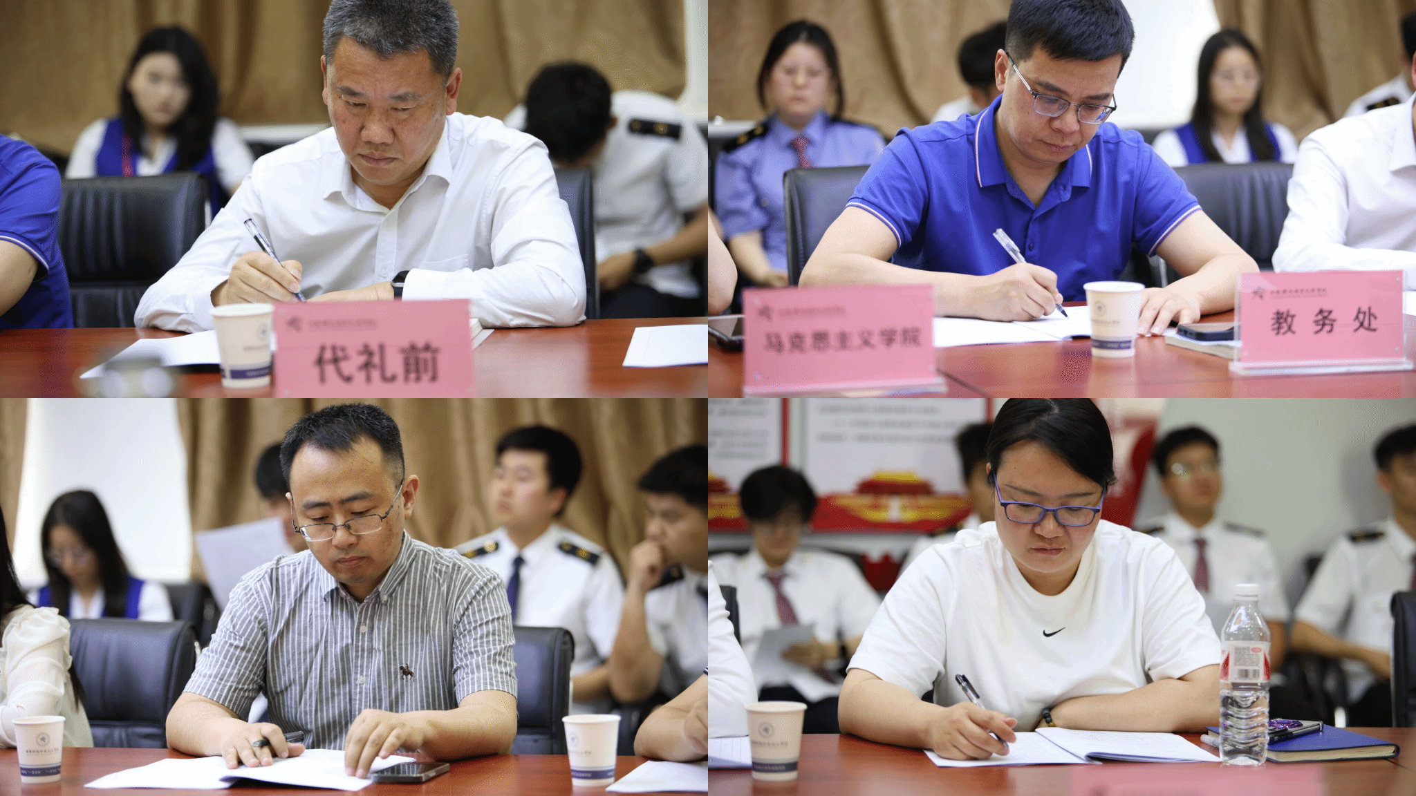 在会议过程中,学院领导与教师们以高度的责任感和专注的态度,认真聆听每一位学生代表的发言,并细致入微地记录下同学们所反馈的各类问题,展现出对教学工作的重视和对学生的关爱。