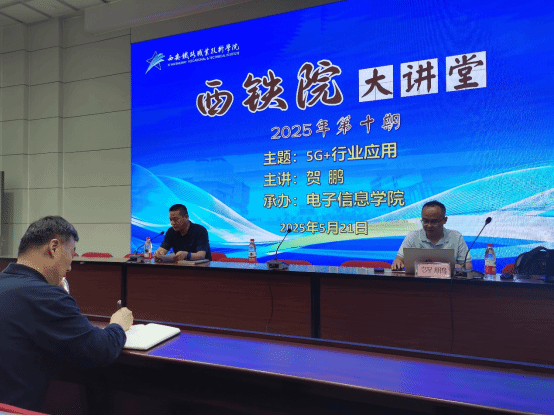 5月21日,电子信息学院特邀浪潮通信技术有限公司高级工程师贺鹏在自强校区阶梯教室开展“5G+行业应用”主题汇报讲座,电子信息学院党总支书记吴西蒙、办公室主任高琳、现代通信技术专业带头人杨国荣、现代通信教研室主任邹娜及现代通信技术专业22级未就业学生鸡23级、24级在校生,部分人工智能、大数据专业学生参会,电子信息学院院长董奇主持活动。