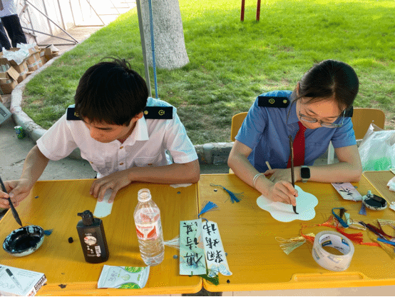 心灵创意坊则成为情感表达的“心灵港湾”。在“墨语签”区域,同学们提笔书写励志箴言,将书签悬挂于展架共享温暖;“扇绘心”活动中,素色团扇被绘上笑脸、爱心等图案,成为独特的艺术纪念品;“串起心连心”手链制作区,同学们专注编织,用色彩缤纷的珠子串联起对生活的热爱;涂色娃娃手绘区,通过颜色的搭配与手指间的勾勒,不仅展现了艺术之美,更释放了心灵压力。活动尾声,师生们纷纷在“5·25心理健康日”主题横幅上签名,共同承诺关注心理健康,营造积极向上的校园氛围。